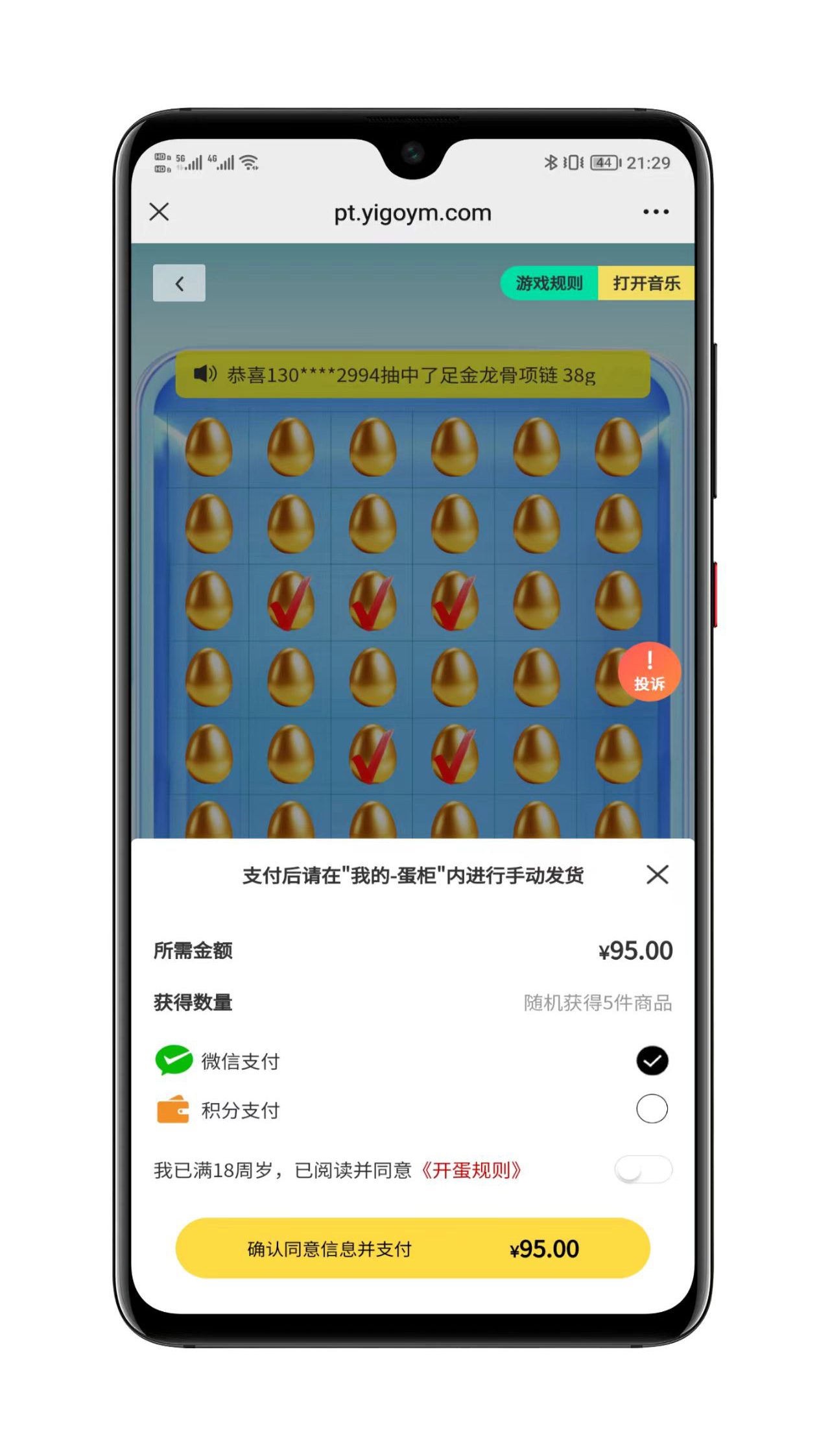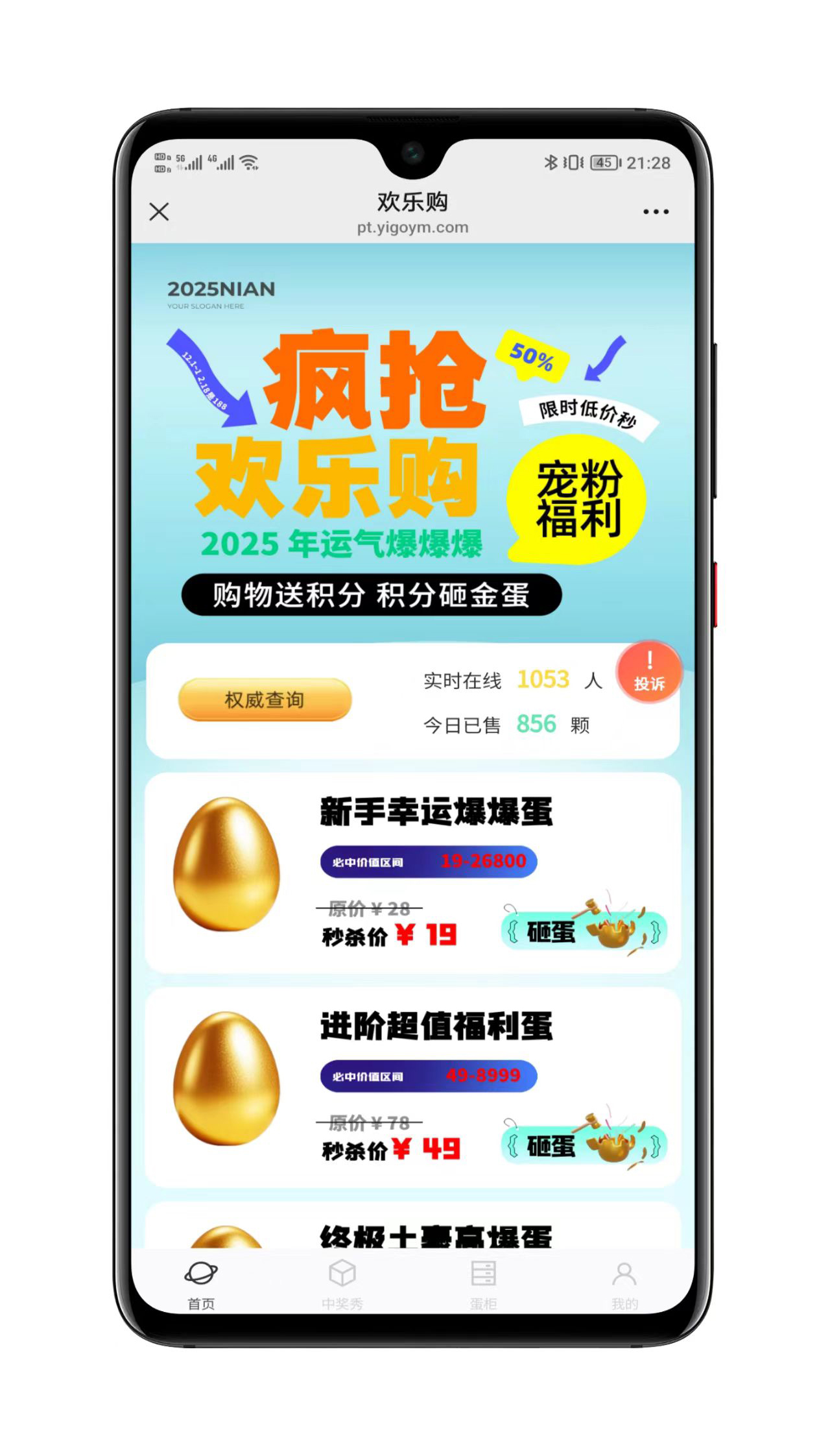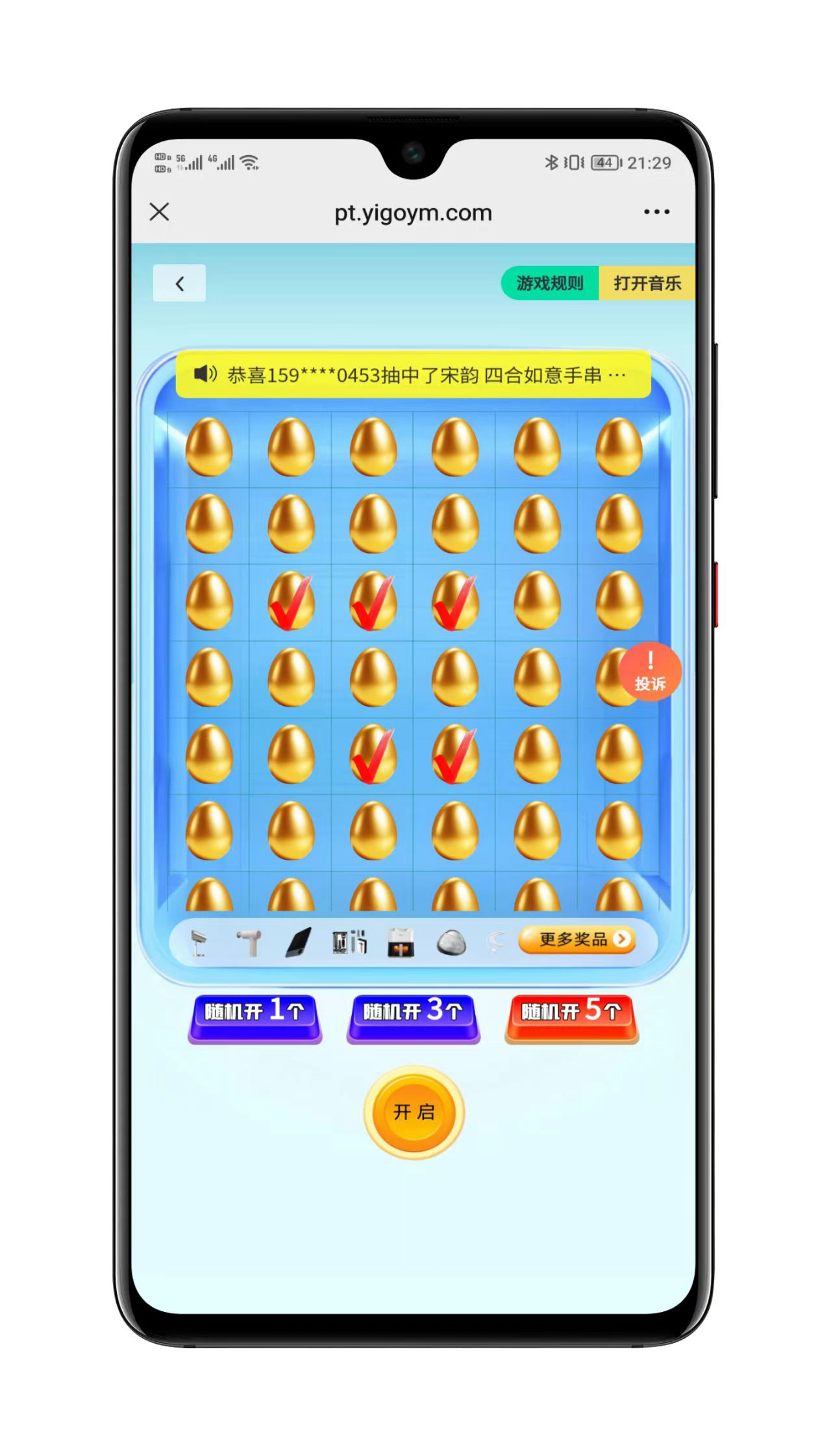 新增砸蛋动画、内部投诉页面、中奖秀!